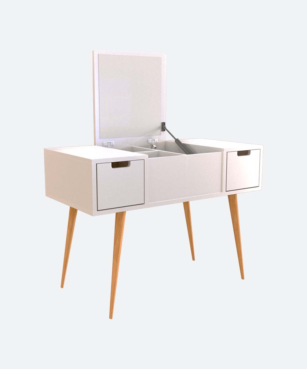 Cette commode à 2 tiroirs avec miroir et mécanisme, fabriquée en MDF, combine praticité et design. Les tiroirs offrent un rangement efficace, tandis que le miroir intégré et son mécanisme ajoutent une touche de modernité et de fonctionnalité à votre espace. Le MDF assure une structure solide et durable.