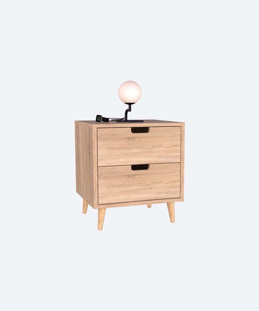 Cette table de nuit en MDF avec des pieds en bois combine style et fonctionnalité. Son design contemporain, associé à la solidité du MDF et la chaleur du bois, en fait un meuble à la fois pratique et esthétique pour votre chambre.