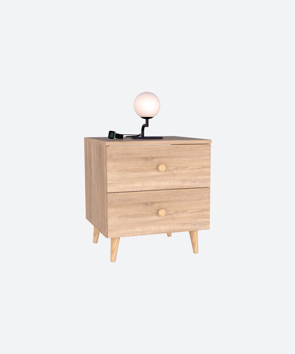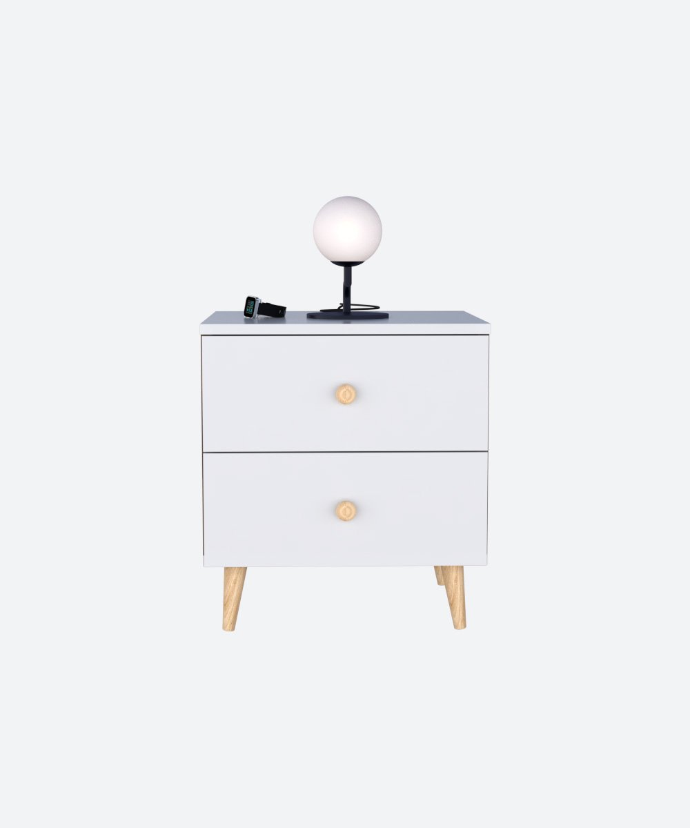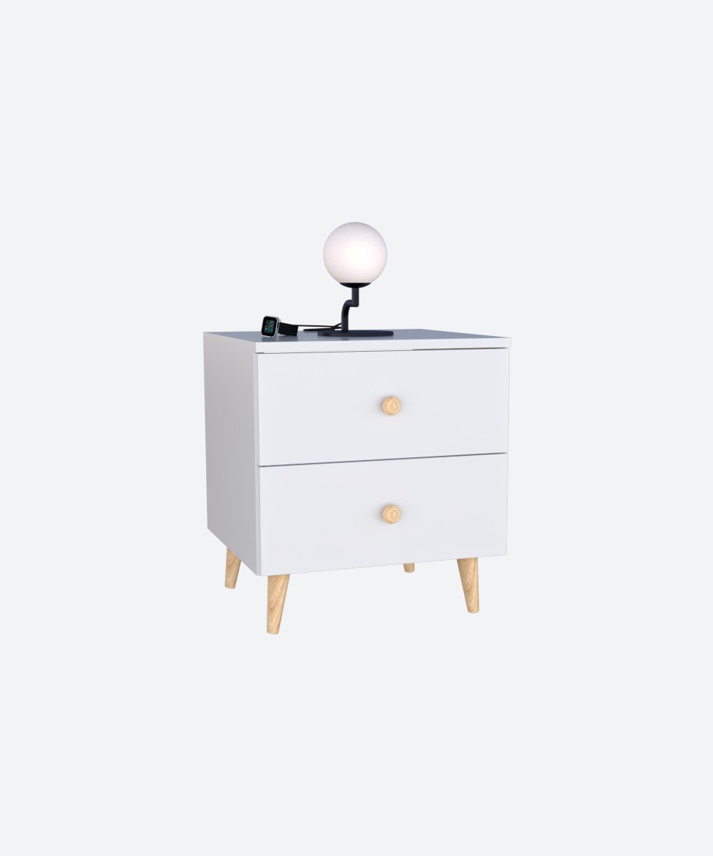 Cette table de nuit en MDF, dotée de pieds et de poignées en bois, allie design moderne et éléments naturels. Les pieds en bois apportent robustesse et élégance, tandis que les poignées offrent une touche pratique et stylée. Un choix parfait pour une chambre à la fois fonctionnelle et raffinée.